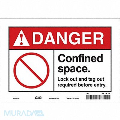 J8724 Safety Sign Vertical Rectangle Number of Printed Sides 1 English Sign Format ANSI/OSHA Format Sign Legend Confined Space. Lock Out And Tag Out Required Before Entry. Sign Legend Background Color White Sign Legend Style Symbol and Text