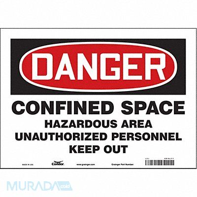 Safety Sign Horizontal Rectangle Number of Printed Sides 1 English Sign Format Traditional OSHA Sign Legend Confined Space Hazardous Area Unauthorized Peronnel Keep Out Sign Legend Background Color White Sign Legend Style Text