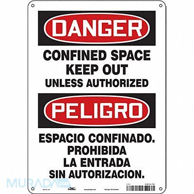 Safety Sign Vertical Rectangle Number of Printed Sides 1 English Spanish Sign Format Traditional OSHA Sign Legend Confined Space Keep Out Unless Authorized/Espacio Confinado. Prohibida La Entrada Sin Autorizacion. Sign Legend Background Color White Sign Legend Style Text