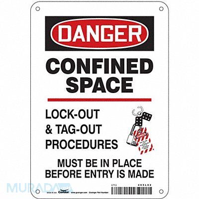 J8749 Safety Sign Horizontal Rectangle Number of Printed Sides 1 English Sign Format Traditional OSHA Sign Legend Confined Space Lock-Out Tag-Out Procedures Must Be In Place Before Entry Is Made Sign Legend Background Color White Sign Legend Style Symbol and Text