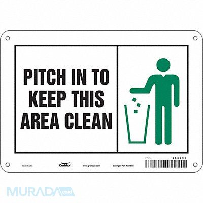 Safety Sign Vertical Rectangle Number of Printed Sides 1 English Sign Legend Pitch In To Keep This Area Clean Sign Legend Background Color White Sign Legend Style Text