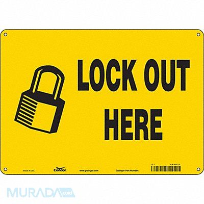 Safety Sign Horizontal Rectangle Number of Printed Sides 1 English Sign Format Other Format Sign Legend Lock Out Here Sign Legend Background Color Yellow Sign Legend Style Symbol and Text