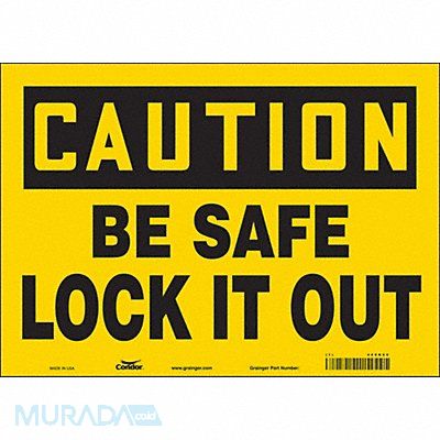 Safety Sign Horizontal Rectangle Number of Printed Sides 1 English Sign Format Traditional OSHA Sign Legend Be Safe Lock It Out Sign Legend Background Color Yellow Sign Legend Style Text
