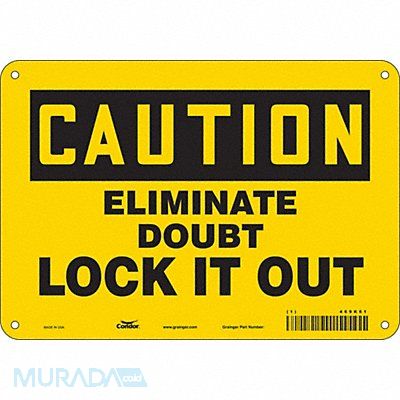K0102 Safety Sign Vertical Rectangle Number of Printed Sides 1 English Sign Format Traditional OSHA Sign Legend Eliminate Doubt Lock It Out Sign Legend Background Color Yellow Sign Legend Style Text