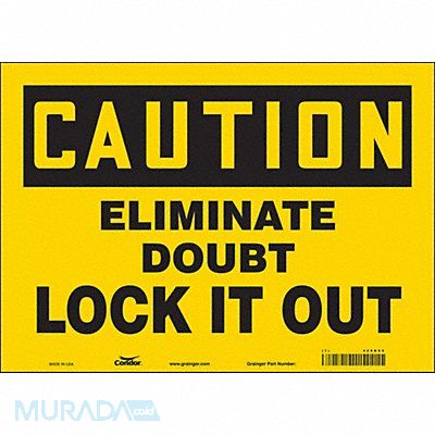 K0102 Safety Sign Horizontal Rectangle Number of Printed Sides 1 English Sign Format Traditional OSHA Sign Legend Eliminate Doubt Lock It Out Sign Legend Background Color Yellow Sign Legend Style Text