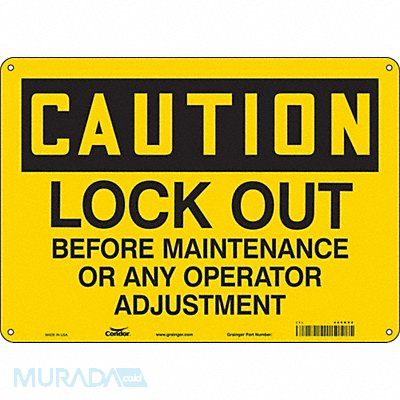 Safety Sign Horizontal Rectangle Number of Printed Sides 1 English Sign Format Traditional OSHA Sign Legend Lock Out Before Maintenance Or Any Operator Adjustment Sign Legend Background Color Yellow Sign Legend Style Text