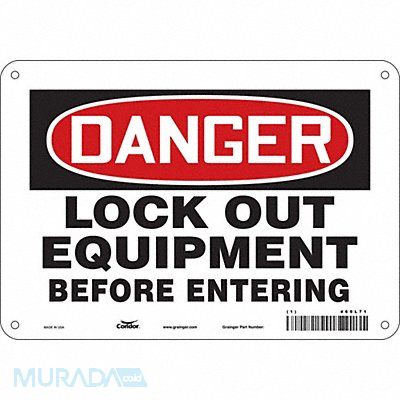 J7708 Safety Sign Vertical Rectangle Number of Printed Sides 1 English Sign Format Traditional OSHA Sign Legend Lock Out Equipment Before Entering Sign Legend Background Color White Sign Legend Style Text