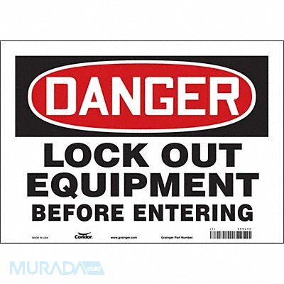 J7708 Safety Sign Horizontal Rectangle Number of Printed Sides 1 English Sign Format Traditional OSHA Sign Legend Lock Out Equipment Before Entering Sign Legend Background Color White Sign Legend Style Text
