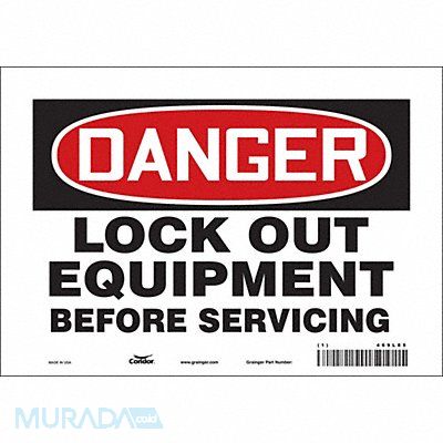 Safety Sign Vertical Rectangle Number of Printed Sides 1 English Sign Format Traditional OSHA Sign Legend Lock Out Equipment Before Servicing Sign Legend Background Color White Sign Legend Style Text