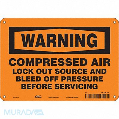 Safety Sign Vertical Rectangle Number of Printed Sides 1 English Sign Format Traditional OSHA Sign Legend Compressed Air Lock Out Source And Bleed Off Pressure Before Servicing Sign Legend Background Color Orange Sign Legend Style Text