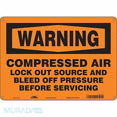 Safety Sign Horizontal Rectangle Number of Printed Sides 1 English Sign Format Traditional OSHA Sign Legend Compressed Air Lock Out Source And Bleed Off Pressure Before Servicing Sign Legend Background Color Orange Sign Legend Style Text