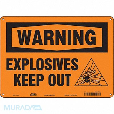 Safety Sign Horizontal Rectangle Number of Printed Sides 1 English Sign Format Traditional OSHA Sign Legend Explosives Keep Out Sign Legend Background Color Orange Sign Legend Style Symbol and Text