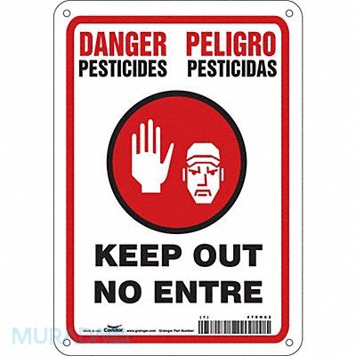 J8483 Safety Sign Horizontal Rectangle Number of Printed Sides 1 English Spanish Sign Format Other Format Sign Legend Danger Pesticides Keep Out Peligro Pesticidas No Entre Sign Legend Background Color White Sign Legend Style Symbol and Text