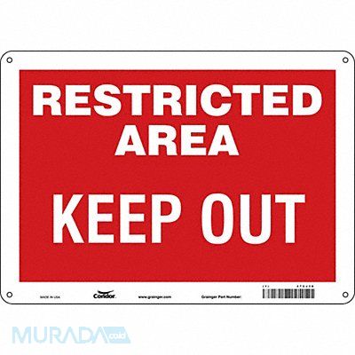 Safety Sign Horizontal Rectangle Number of Printed Sides 1 English Sign Format Other Format Sign Legend Restricted Area Keep Out Sign Legend Background Color Red White Sign Legend Style Text