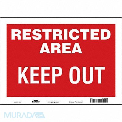Safety Sign Horizontal Rectangle Number of Printed Sides 1 English Sign Format Other Format Sign Legend Restricted Area Keep Out Sign Legend Background Color Red White Sign Legend Style Text
