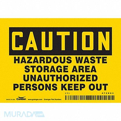 Safety Sign Horizontal Rectangle Number of Printed Sides 1 English Sign Format Traditional OSHA Sign Legend Hazardous Waste Storage Area Unauthorized Persons Keep Out Sign Legend Background Color Yellow Sign Legend Style Text