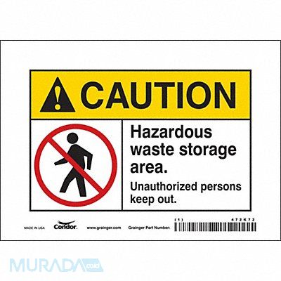 Safety Sign Horizontal Rectangle Number of Printed Sides 1 English Sign Format ANSI/OSHA Format Sign Legend Hazardous Waste Storage Area. Unauthorized Persons Keep Out. Sign Legend Background Color White Sign Legend Style Symbol and Text