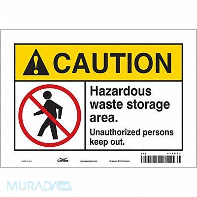 Safety Sign Vertical Rectangle Number of Printed Sides 1 English Sign Format ANSI/OSHA Format Sign Legend Hazardous Waste Storage Area. Unauthorized Persons Keep Out. Sign Legend Background Color White Sign Legend Style Symbol and Text