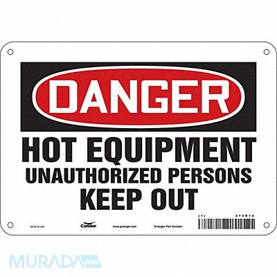 Safety Sign Vertical Rectangle Number of Printed Sides 1 English Sign Format Traditional OSHA Sign Legend Hot Equipment Unauthorized Persons Keep Out Sign Legend Background Color White Sign Legend Style Text
