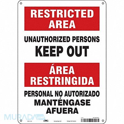 Safety Sign Vertical Rectangle Number of Printed Sides 1 English Spanish Sign Format Other Format Sign Legend Unauthorized Persons Keep Out/Personal No Autorizado Mantengase Afuera Sign Legend Background Color Red White Sign Legend Style Text