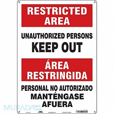 Safety Sign Vertical Rectangle Number of Printed Sides 1 English Spanish Sign Format Other Format Sign Legend Unauthorized Persons Keep Out/Personal No Autorizado Mantengase Afuera Sign Legend Background Color Red White Sign Legend Style Text