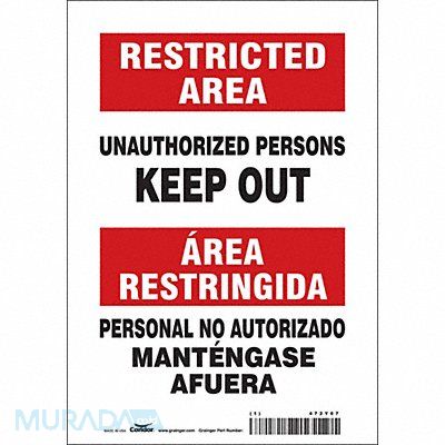 Safety Sign Horizontal Rectangle Number of Printed Sides 1 English Spanish Sign Format Other Format Sign Legend Unauthorized Persons Keep Out/Personal No Autorizado Mantengase Afuera Sign Legend Background Color Red White Sign Legend Style Text