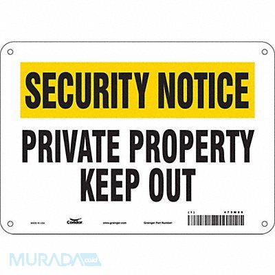 Safety Sign Vertical Rectangle Number of Printed Sides 1 English Sign Format Other Format Sign Legend Private Property Keep Out Sign Legend Background Color White Yellow Sign Legend Style Text
