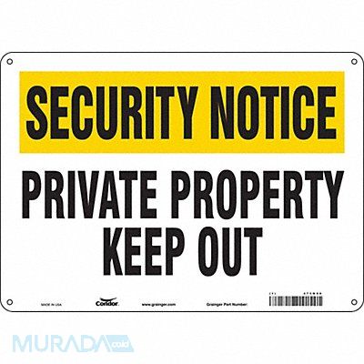 Safety Sign Horizontal Rectangle Number of Printed Sides 1 English Sign Format Other Format Sign Legend Private Property Keep Out Sign Legend Background Color White Yellow Sign Legend Style Text