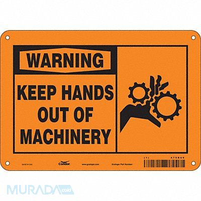 Safety Sign Vertical Rectangle Number of Printed Sides 1 English Sign Format Traditional OSHA Sign Legend Keep Hands Out Of Machinery Sign Legend Background Color Orange Sign Legend Style Symbol and Text
