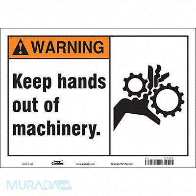 Safety Sign Horizontal Rectangle Number of Printed Sides 1 English Sign Format ANSI/OSHA Format Sign Legend Keep Hands Out Of Machinery. Sign Legend Background Color White Sign Legend Style Symbol and Text