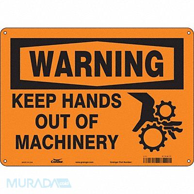Safety Sign Horizontal Rectangle Number of Printed Sides 1 English Sign Format Traditional OSHA Sign Legend Keep Hands Out Of Machinery Sign Legend Background Color Orange Sign Legend Style Symbol and Text