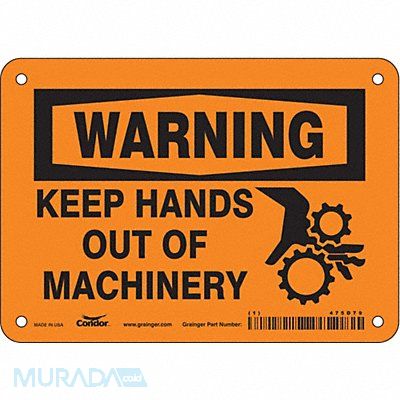 Safety Sign Horizontal Rectangle Number of Printed Sides 1 English Sign Format Traditional OSHA Sign Legend Keep Hands Out Of Machinery Sign Legend Background Color Orange Sign Legend Style Symbol and Text
