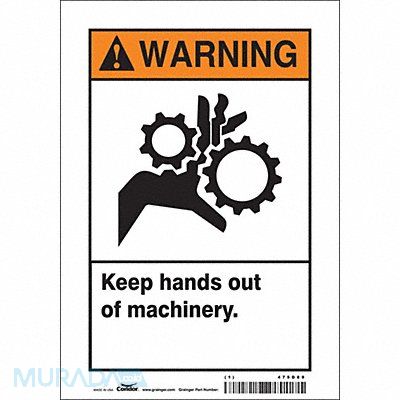 Safety Sign Horizontal Rectangle Number of Printed Sides 1 English Sign Format ANSI/OSHA Format Sign Legend Keep Hands Out Of Machinery. Sign Legend Background Color White Sign Legend Style Symbol and Text