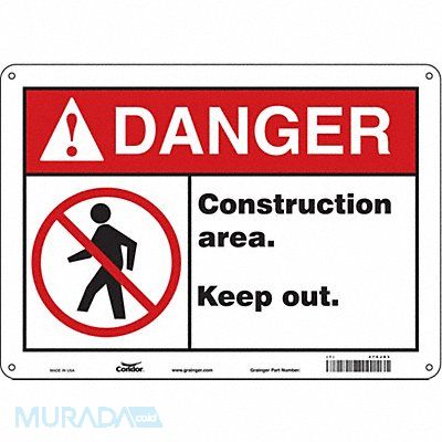 Safety Sign Horizontal Rectangle Number of Printed Sides 1 English Sign Format ANSI/OSHA Format Sign Legend Construction Area. Keep Out. Sign Legend Background Color White Sign Legend Style Symbol and Text