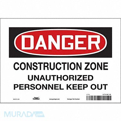 Safety Sign Vertical Rectangle Number of Printed Sides 1 English Sign Format Traditional OSHA Sign Legend Construction Zone Unauthorized Personnel Keep Out Sign Legend Background Color White Sign Legend Style Text