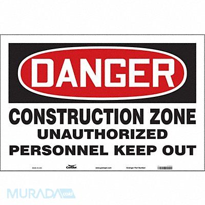 Safety Sign Horizontal Rectangle Number of Printed Sides 1 English Sign Format Traditional OSHA Sign Legend Construction Zone Unauthorized Personnel Keep Out Sign Legend Background Color White Sign Legend Style Text