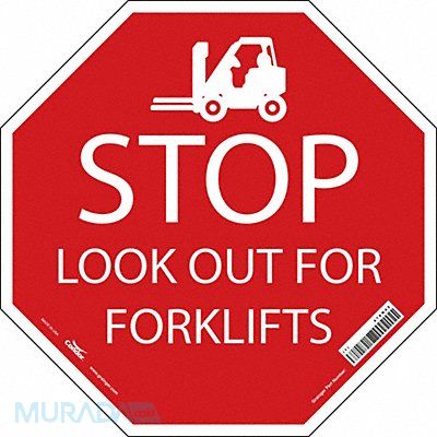 Safety Sign Octagon Number of Printed Sides 1 English Sign Format Other Format Sign Legend Stop Look Out For Forklifts Sign Legend Background Color Red White Sign Legend Style Symbol and Text
