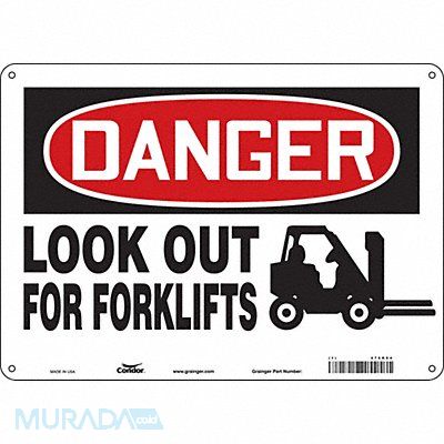 Safety Sign Horizontal Rectangle Number of Printed Sides 1 English Sign Format Traditional OSHA Sign Legend Look Out For Fork Lifts Sign Legend Background Color White Sign Legend Style Symbol and Text