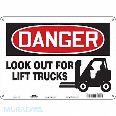 Safety Sign Horizontal Rectangle Number of Printed Sides 1 English Sign Format Traditional OSHA Sign Legend Look Out For Lift Trucks Sign Legend Background Color White Sign Legend Style Symbol and Text