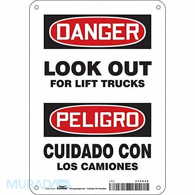 Safety Sign Horizontal Rectangle Number of Printed Sides 1 English Spanish Sign Format Traditional OSHA Sign Legend Look Out For Lift Trucks/Cuidado Con Los Camiones Sign Legend Background Color White Sign Legend Style Text