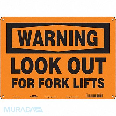 Safety Sign Horizontal Rectangle Number of Printed Sides 1 English Sign Format Traditional OSHA Sign Legend Look Out For Fork Lifts Sign Legend Background Color Orange Sign Legend Style Text