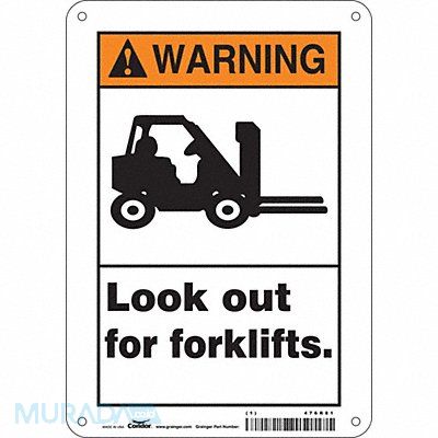 Safety Sign Horizontal Rectangle Number of Printed Sides 1 English Sign Format ANSI/OSHA Format Sign Legend Look Out For Forklifts. Sign Legend Background Color White Sign Legend Style Symbol and Text