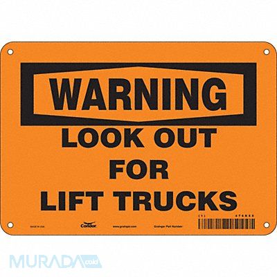Safety Sign Vertical Rectangle Number of Printed Sides 1 English Sign Format Traditional OSHA Sign Legend Look Out For Lift Trucks Sign Legend Background Color Orange Sign Legend Style Text