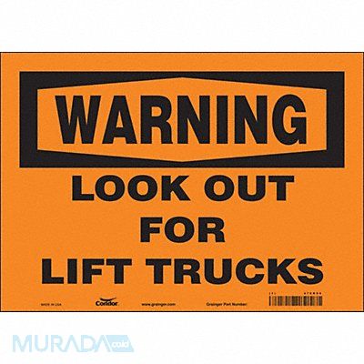 Safety Sign Horizontal Rectangle Number of Printed Sides 1 English Sign Format Traditional OSHA Sign Legend Look Out For Lift Trucks Sign Legend Background Color Orange Sign Legend Style Text