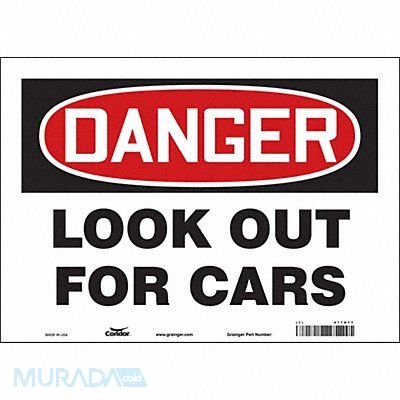 Safety Sign Horizontal Rectangle Number of Printed Sides 1 English Sign Format Traditional OSHA Sign Legend Look Out For Cars Sign Legend Background Color White Sign Legend Style Text