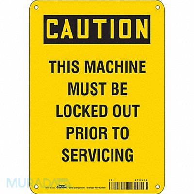 Safety Sign Horizontal Rectangle Number of Printed Sides 1 English Sign Format Traditional OSHA Sign Legend This Machine Must Be Locked Out Prior To Servicing Sign Legend Background Color Yellow Sign Legend Style Text