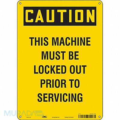 Safety Sign Vertical Rectangle Number of Printed Sides 1 English Sign Format Traditional OSHA Sign Legend This Machine Must Be Locked Out Prior To Servicing Sign Legend Background Color Yellow Sign Legend Style Text