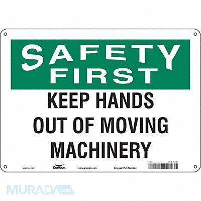 Safety Sign Horizontal Rectangle Number of Printed Sides 1 English Sign Format Traditional OSHA Sign Legend Keep Hands Out Of Moving Machinery Sign Legend Background Color White Sign Legend Style Text