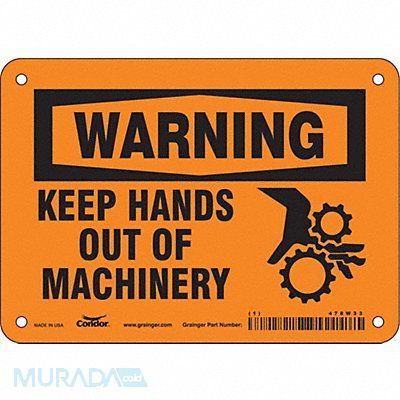 Safety Sign Horizontal Rectangle Number of Printed Sides 1 English Sign Format Traditional OSHA Sign Legend Keep Hands Out Of Machinery Sign Legend Background Color Orange Sign Legend Style Symbol and Text