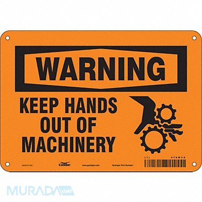 Safety Sign Vertical Rectangle Number of Printed Sides 1 English Sign Format Traditional OSHA Sign Legend Keep Hands Out Of Machinery Sign Legend Background Color Orange Sign Legend Style Symbol and Text